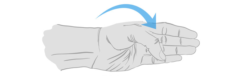 Using the same motion you would in putting on a bracelet, position your hand so that your thumb finger touches the middle of your pinky finger.