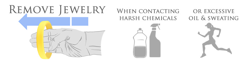 Always try to remove your jewelry when active and when using dish soaps or other heavy cleaning substances. These substances can contain harsh chemicals that will accelerate the wear on your items. Additionally, the excess oils and debris accumulated on your skin when you are active will dirty and dull even the brightest of jewelry.