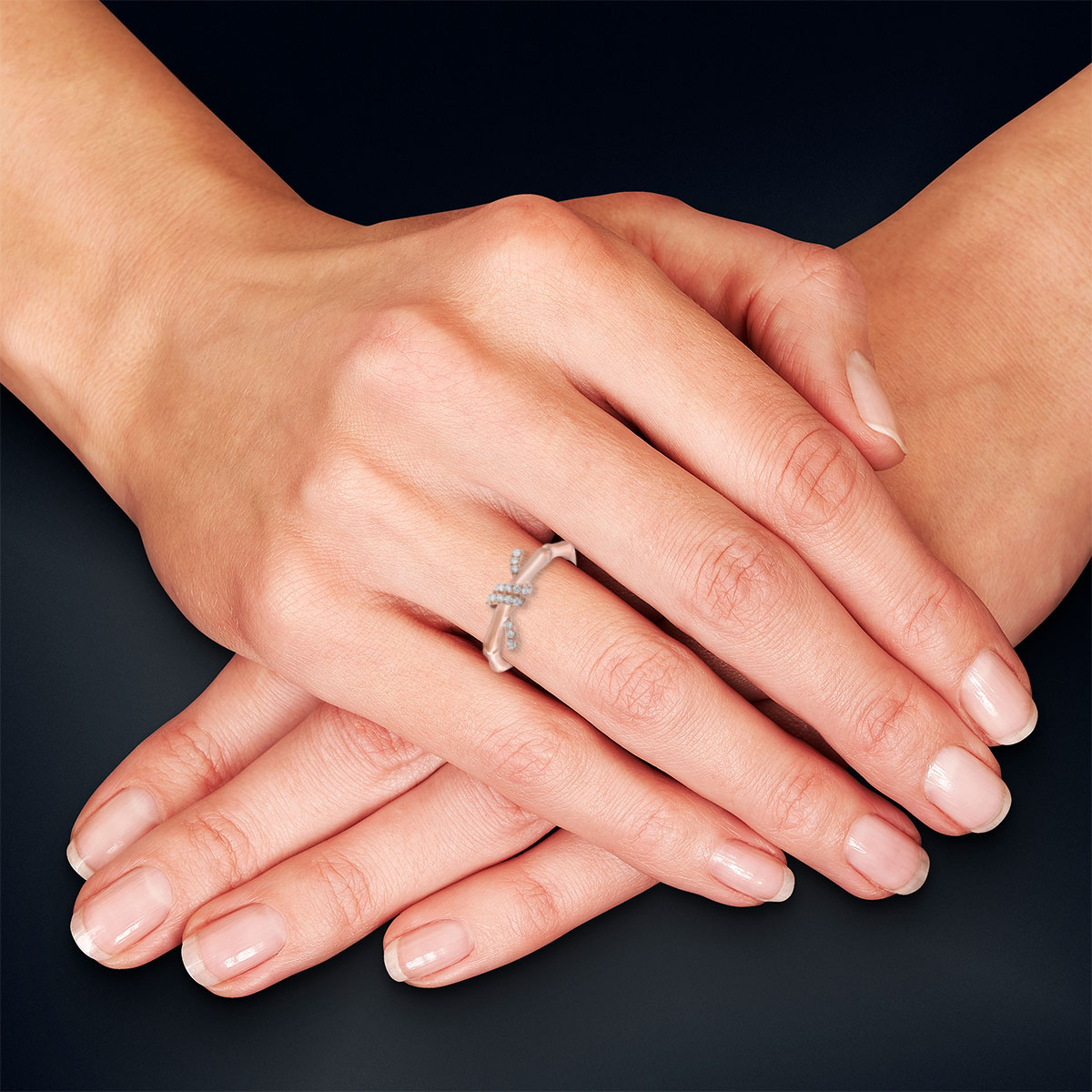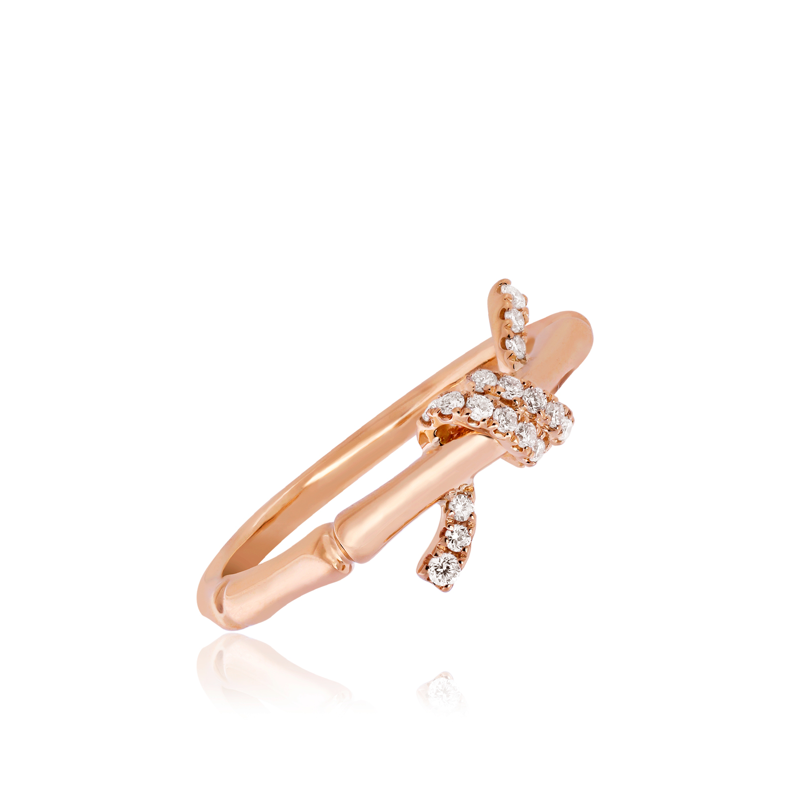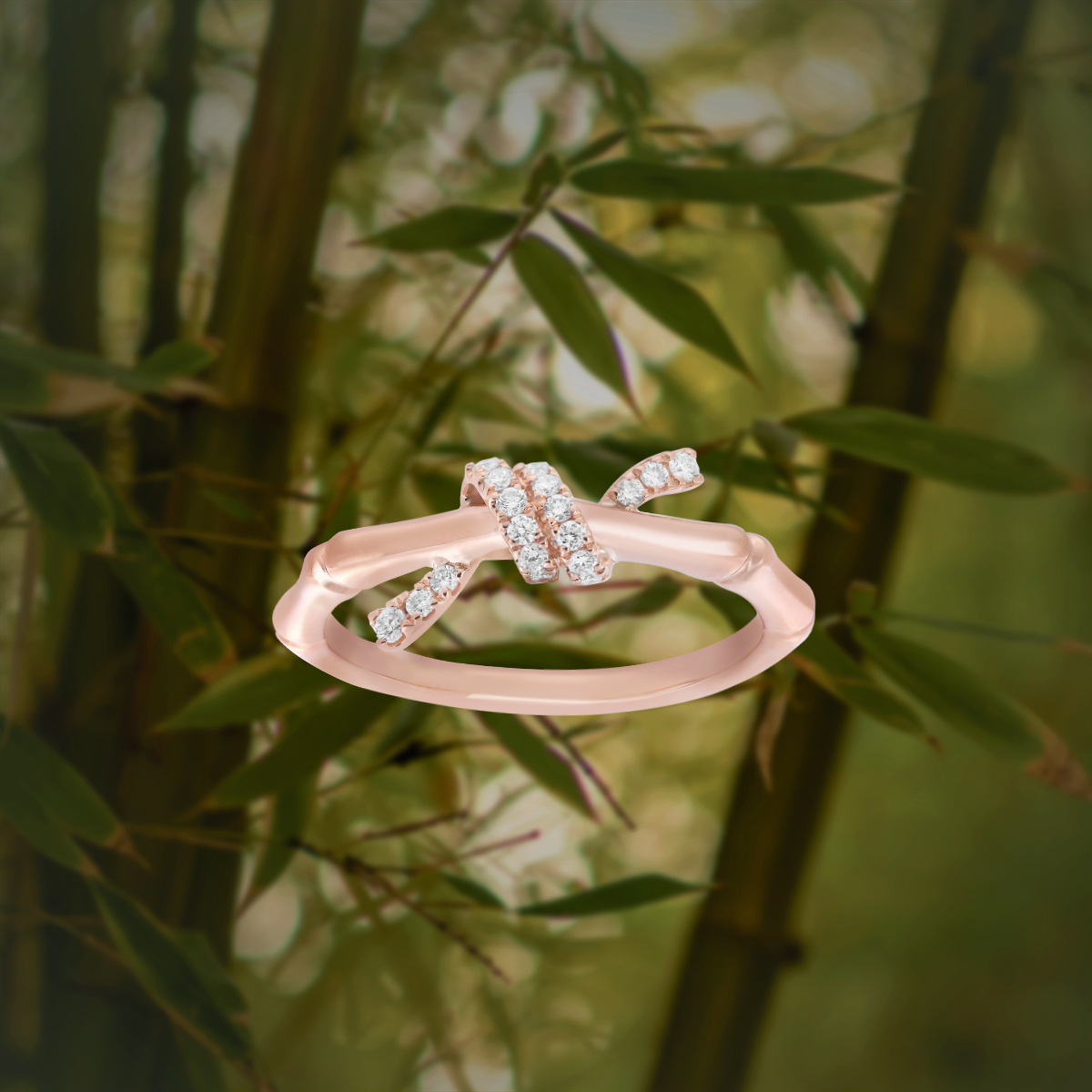 A beautiful, gold bamboo pendant diamond ring. Measures 3mm (approx. 1/10”) x 5mm (approx. 1/5”) with 0.14tcw diamonds. Lifetime guarantee.