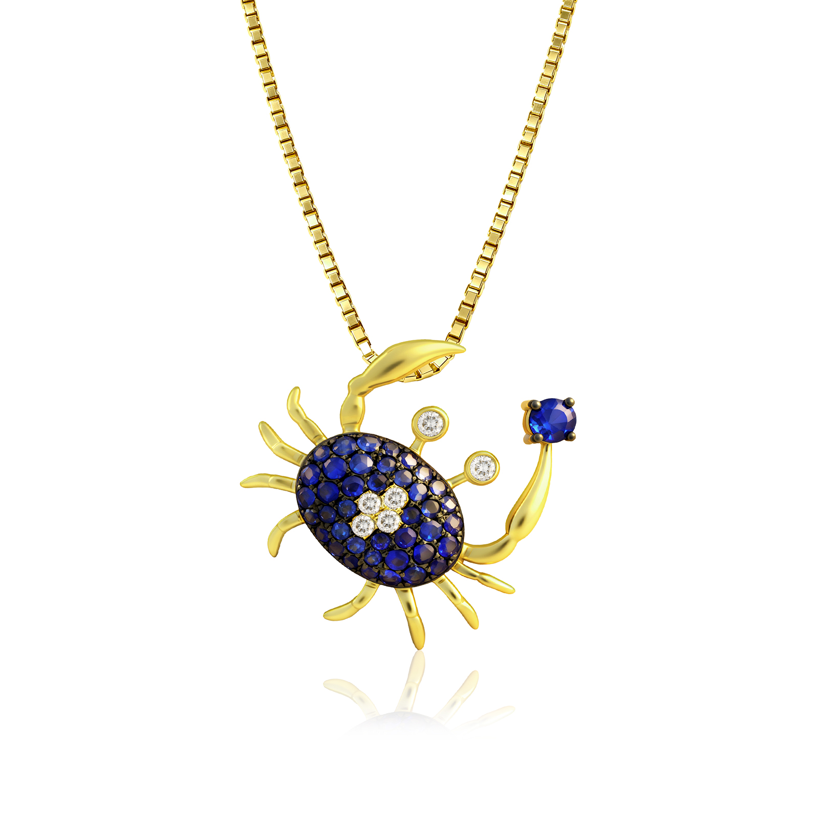 You're viewing: Blue Sapphire Crab Pendant in Yellow Gold Original price was: $1,499.00.Current price is: $1,349.10.