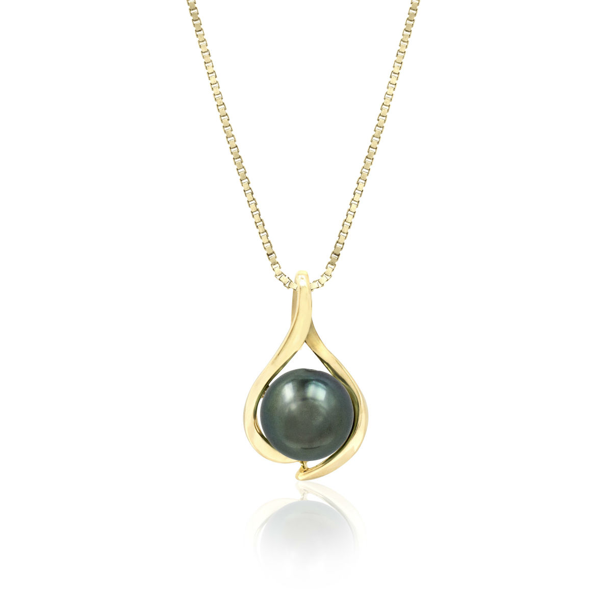 Stunning, 14K gold Tahitian black pearl paʻa pendant. 9mm (approx. 2/5″) pearl. Perfect for everyday wear. Lifetime guarantee. From Honolulu, Hawaii.