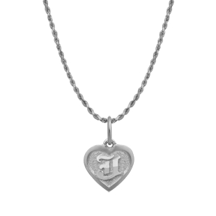 14K White Gold [Heart Initial] with 1.0mm Rope Chain 18″ Raised letter “J” SKU: 1745961910-606