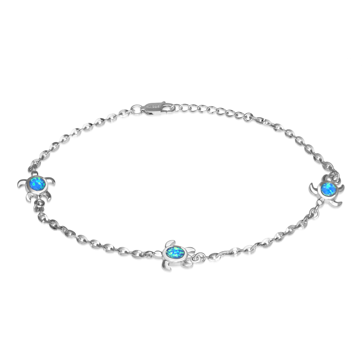 Sterling Silver Opal Turtle bracelet. Synthetic Opal. Standard size 9″with extender. Lifetime guarantee.