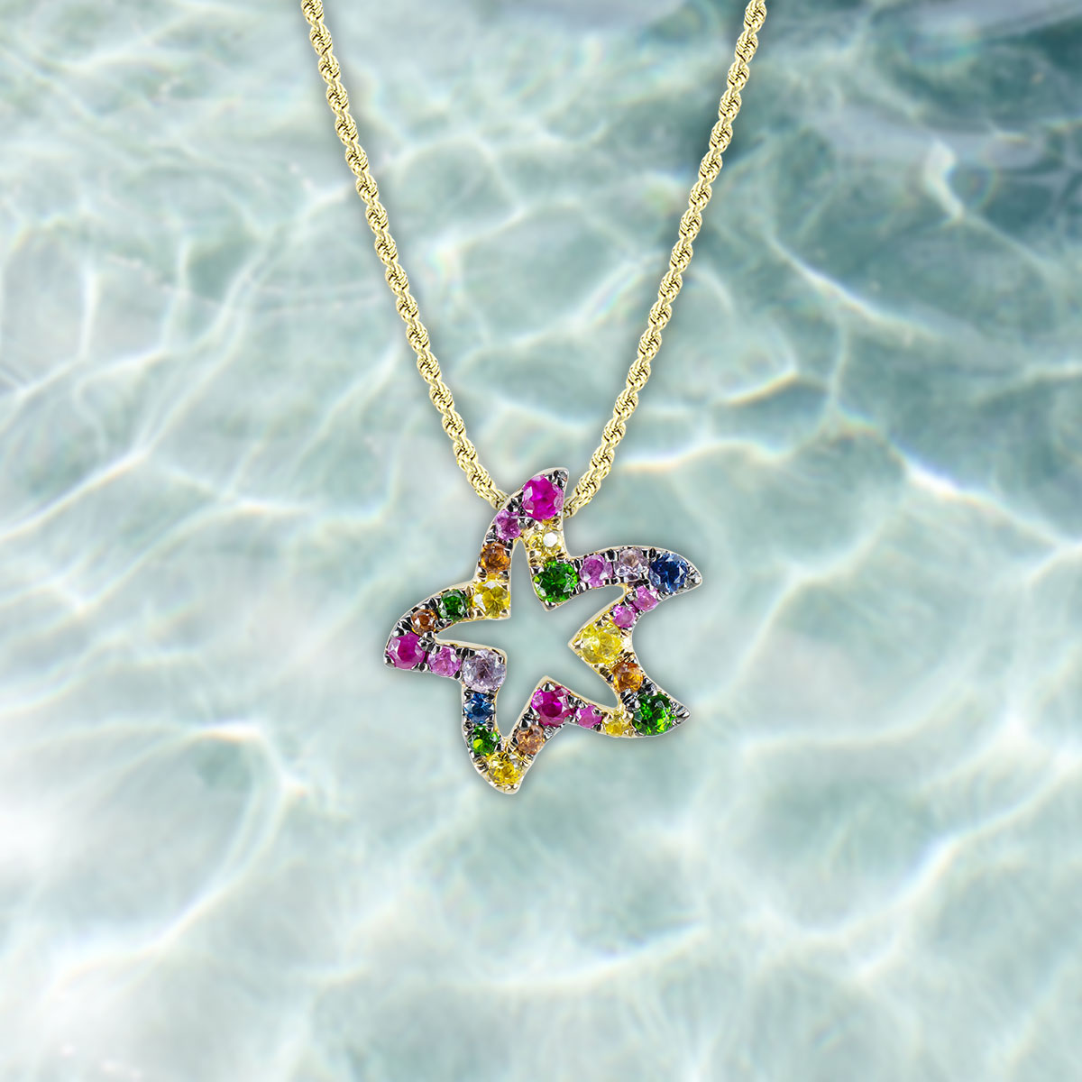 A playful gold charm pendant of a starfish. Great for everyday wear, or as a gift!