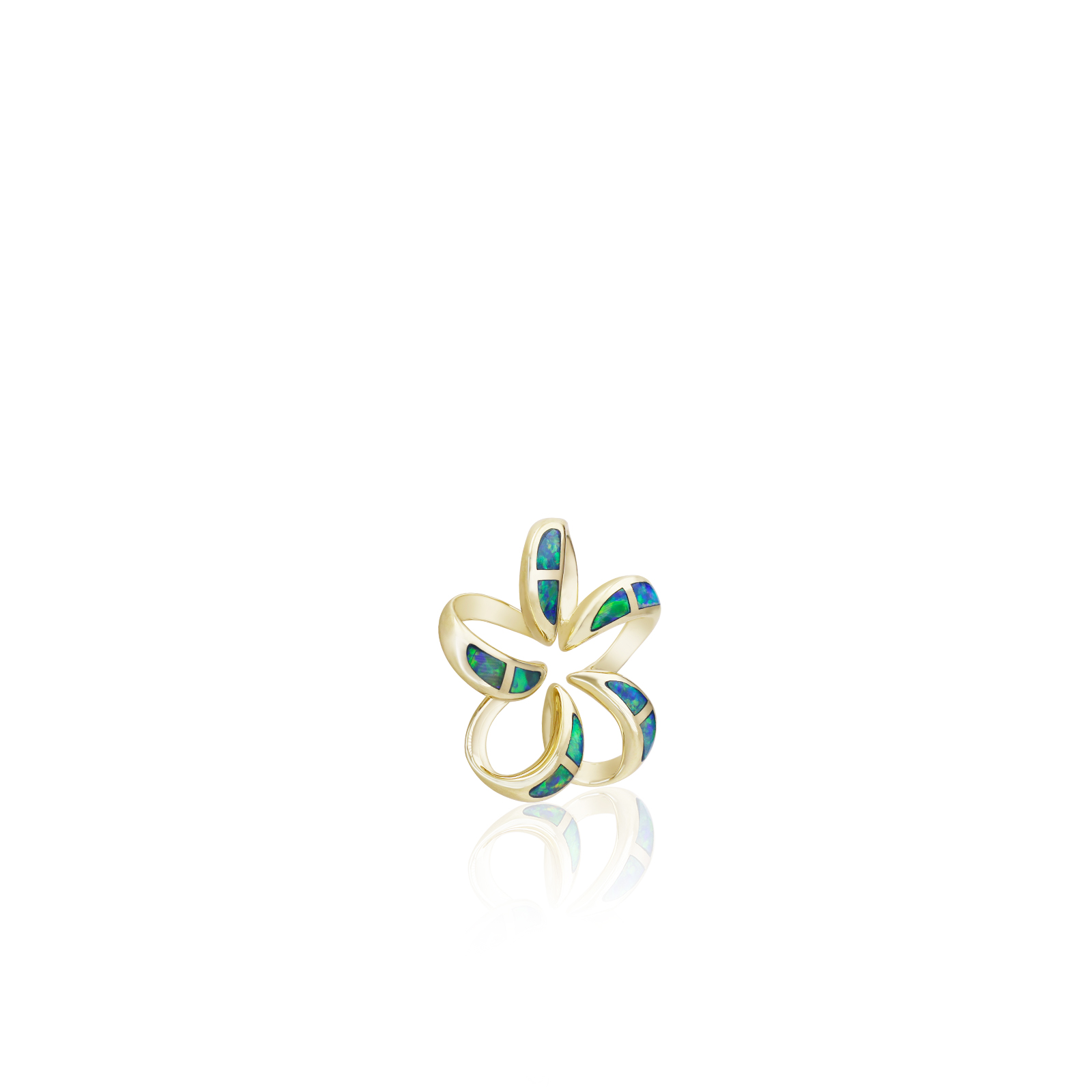 A beautiful, 14K solid gold plumeria contour pendant. Available in 13mm (1/2″), 15mm (approx. 3/5″), 18mm (approx. 7/10″). Plumeria flowers primarily symbolize natural beauty, charm, and grace. They also represent spring, new life, and a new beginning, or birth. The plumeria flower has a special significance in the Hawaiian culture as it symbolizes everything that is positive and balanced in life. It is also used for making the world famous Hawaiian leis.
