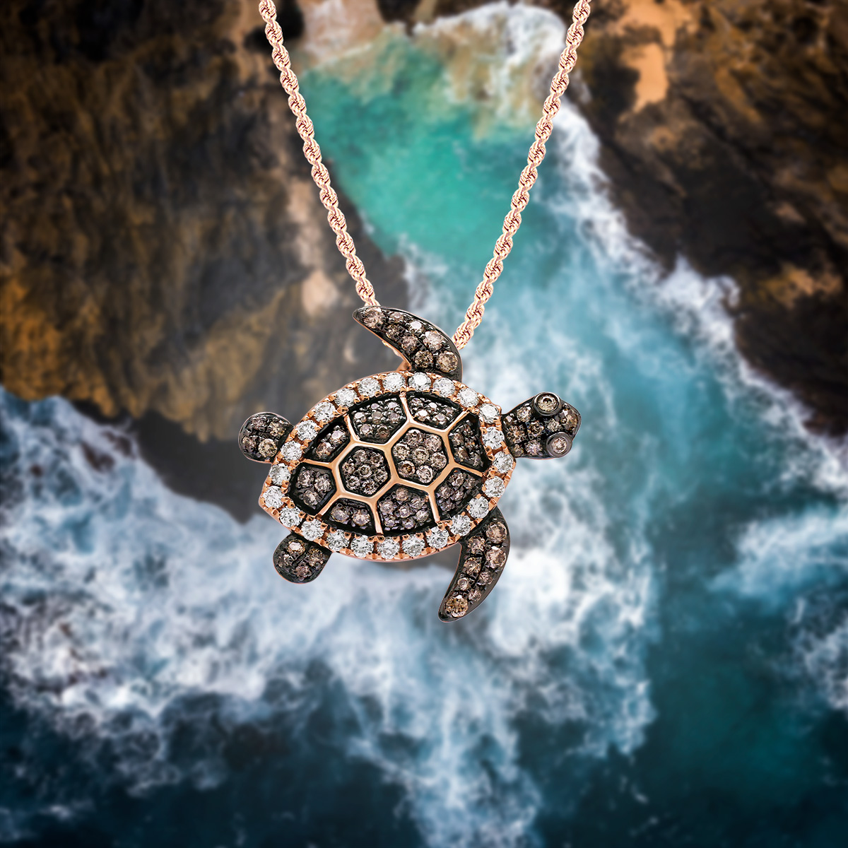 14K rose gold turtle pendant. Perfect for everyday wear, or as a gift! From Honolulu, Hawaii.