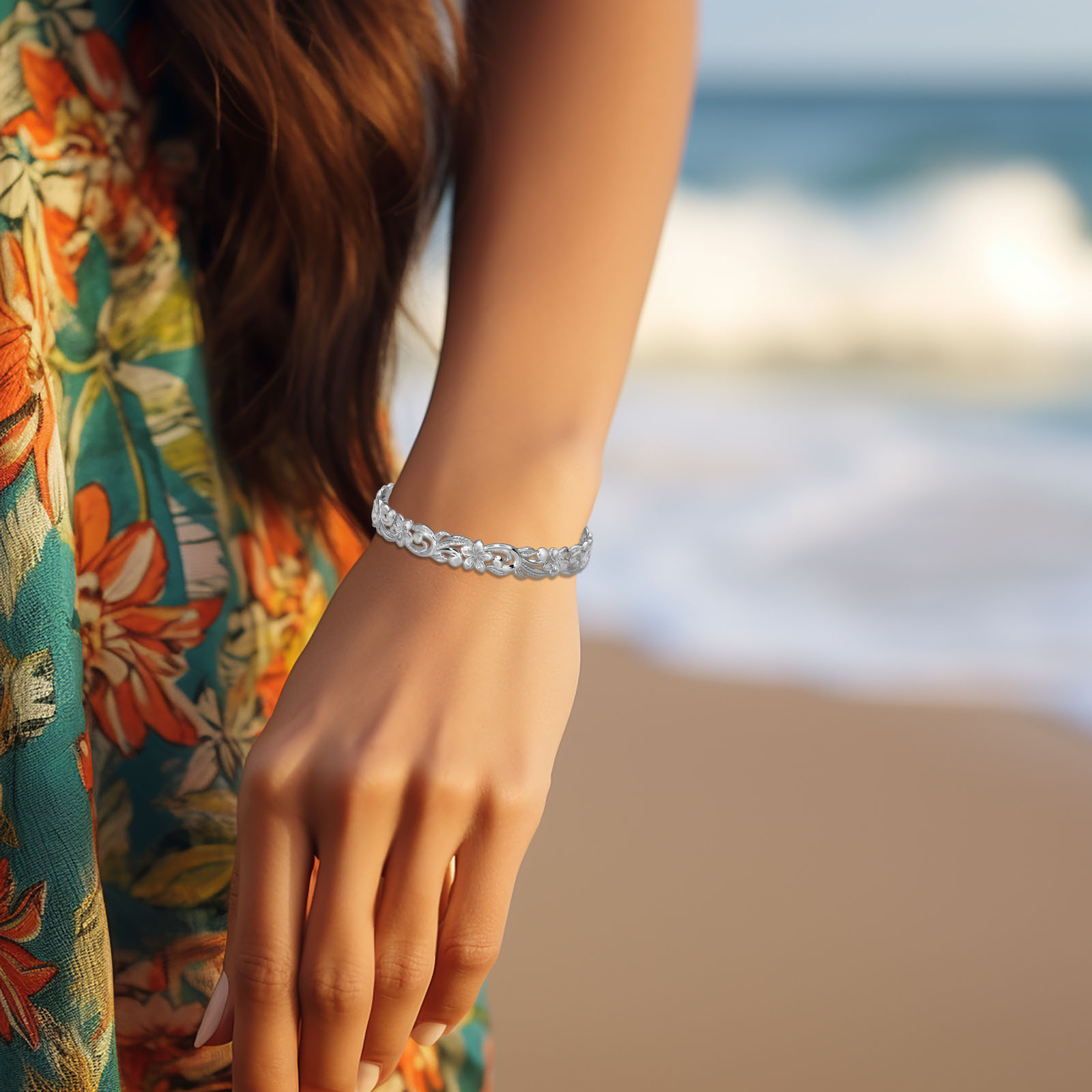 You're viewing: Silver Plumeria Scroll Cutout Bangle Original price was: $329.00.Current price is: $296.10.