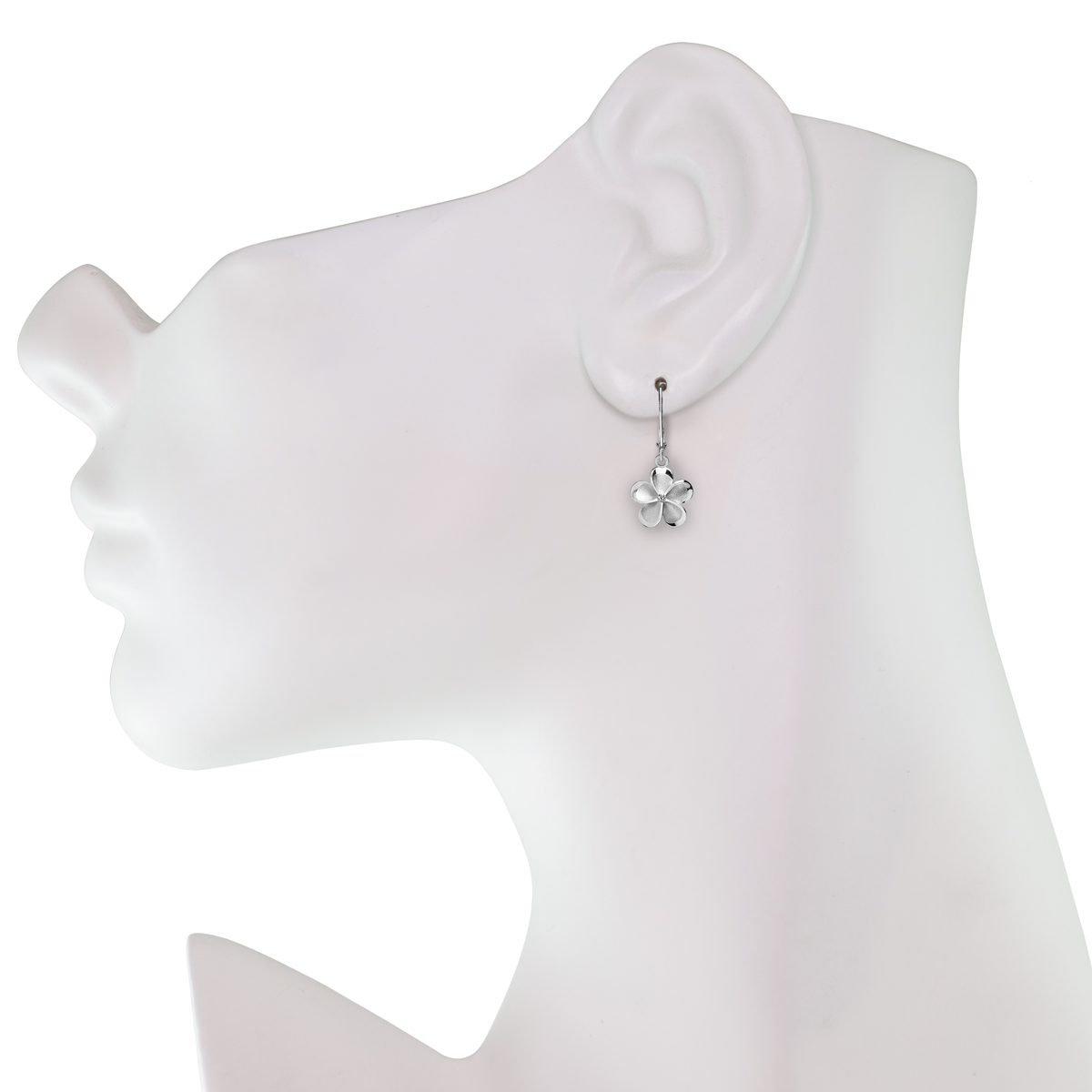 Sterling Silver plumeria diamond leverback earring set. Great for everyday wear, or as a gift for the radiant flower in your life.