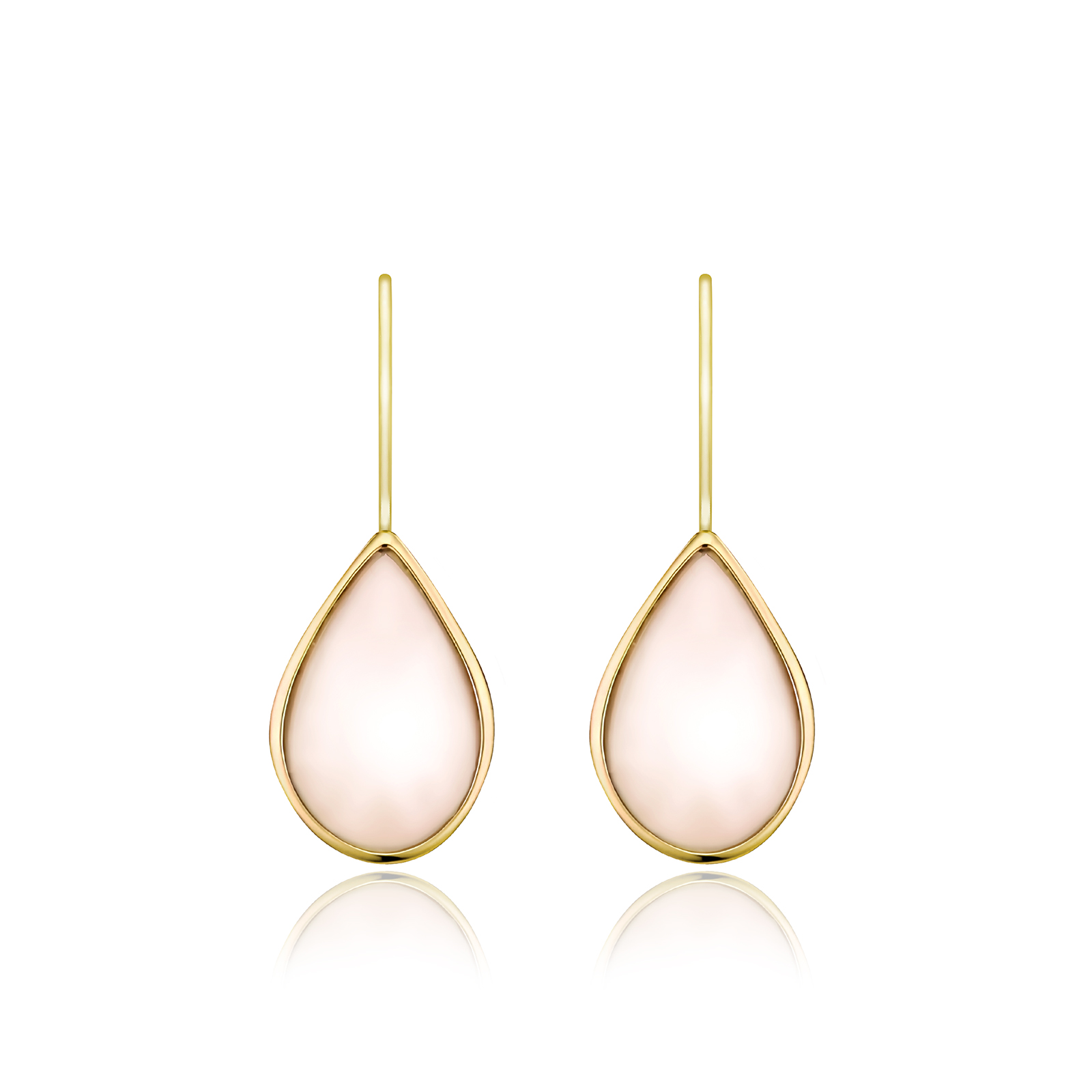 White Teardrop Mother of Pearl Hook Earrings in Yellow Gold